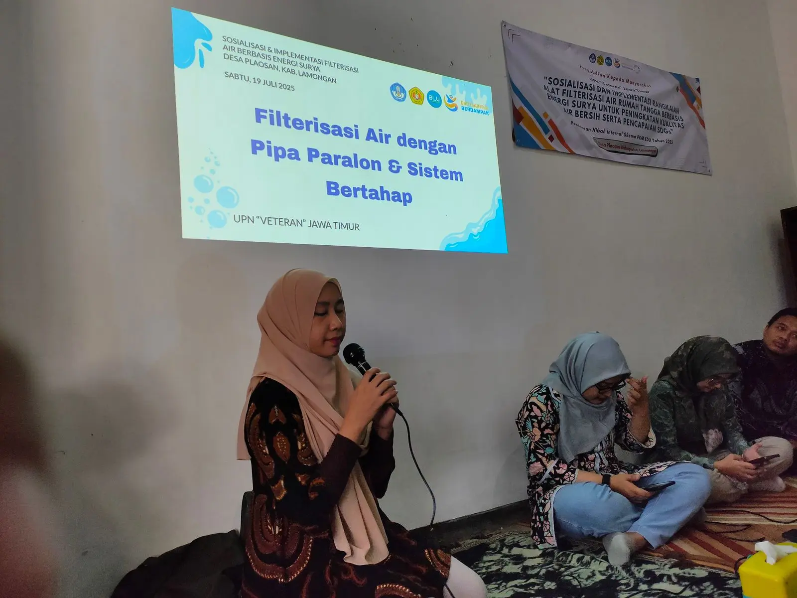 “Lamongan memiliki potensi sumber air yang cukup, namun masih banyak warga yang menghadapi permasalahan warna, bau, dan kekeruhan air. Teknologi filter vertikal ini kami rancang agar mudah dibuat, murah, dan mampu menjawab kebutuhan mendesak masyarakat akan air yang lebih bersih,” ujar Primasari dalam penyampaian materi.